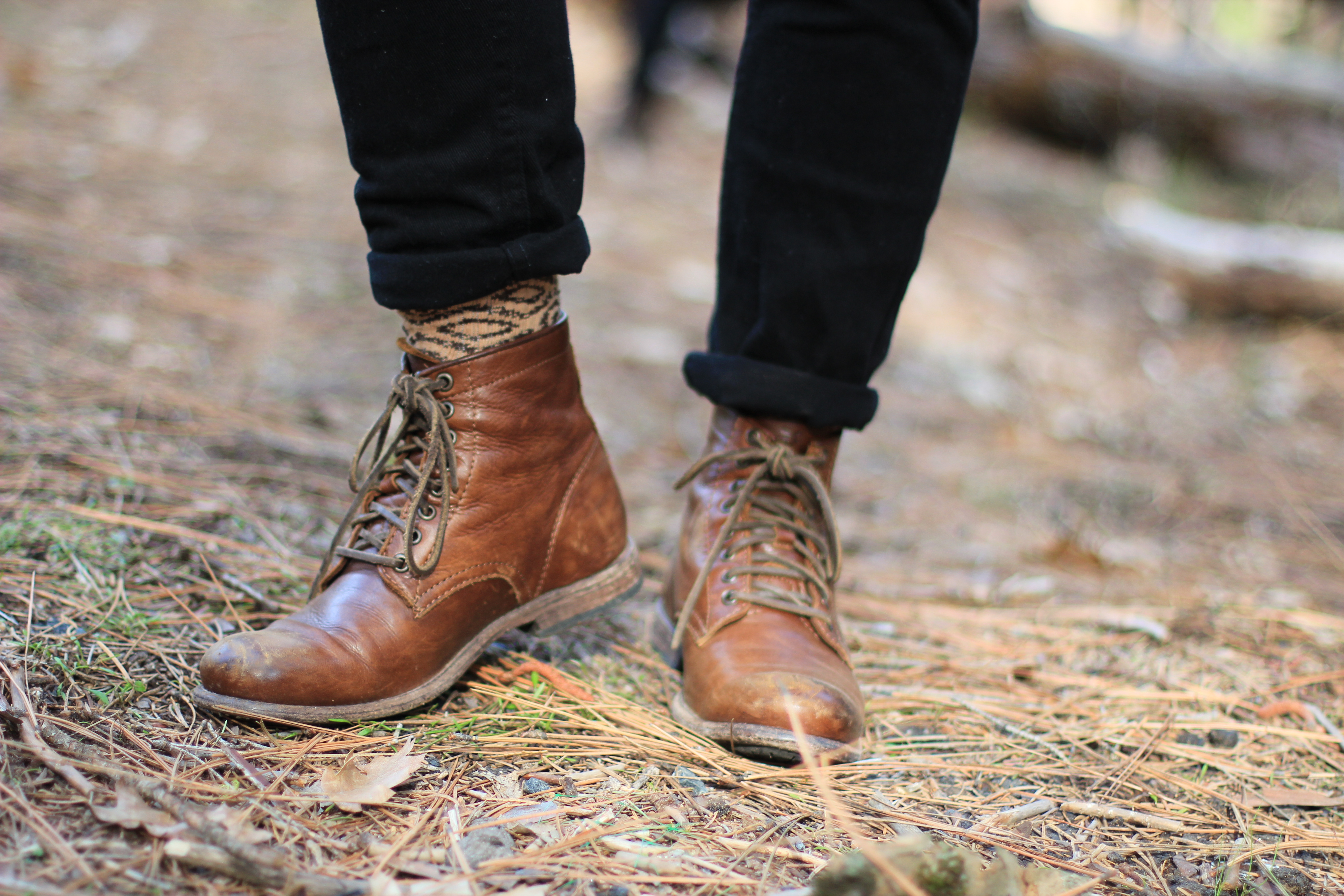 Worn with this is a nice plaid herringbone scarf which again adds texture and pattern to a plain outfit.  On the bottom are nice tapered black jeans with no break, cuffed to give way to my boots.  If you look closely, you can see that my socks have a leopard/tribal print to them, adding to the nature theme of the trip.