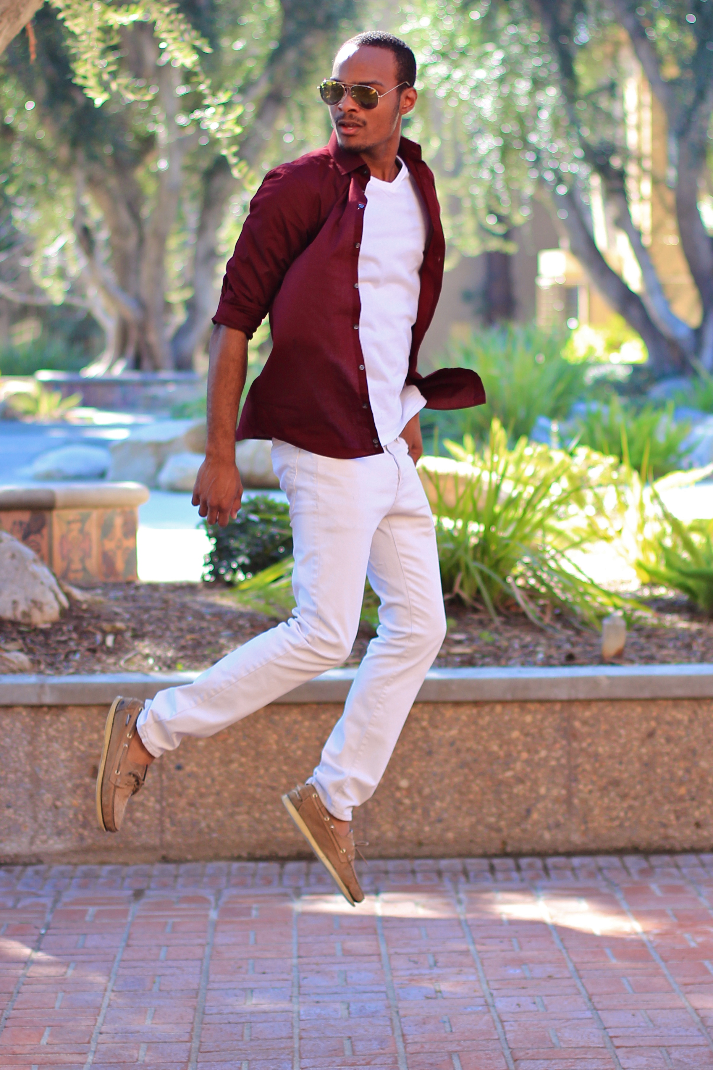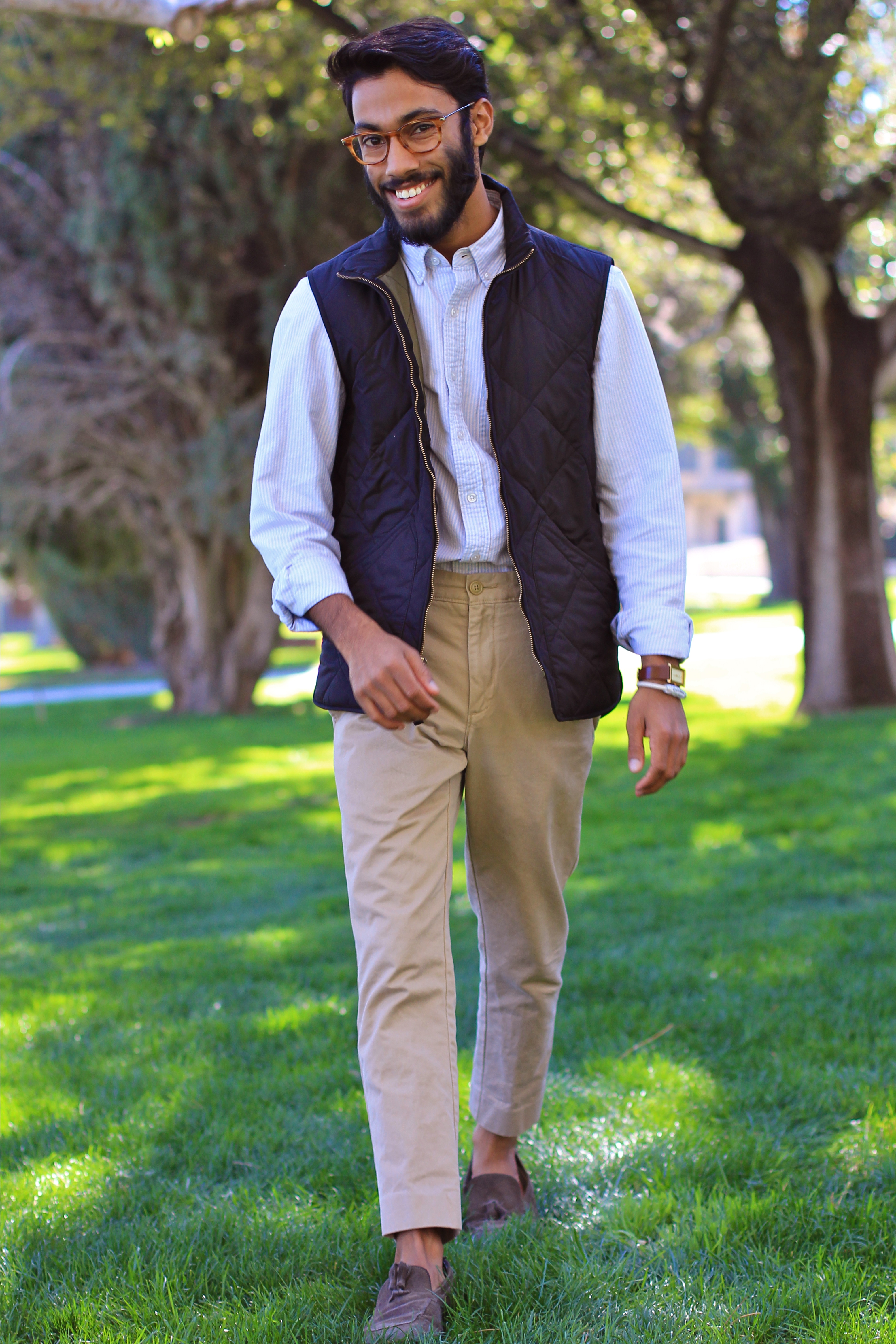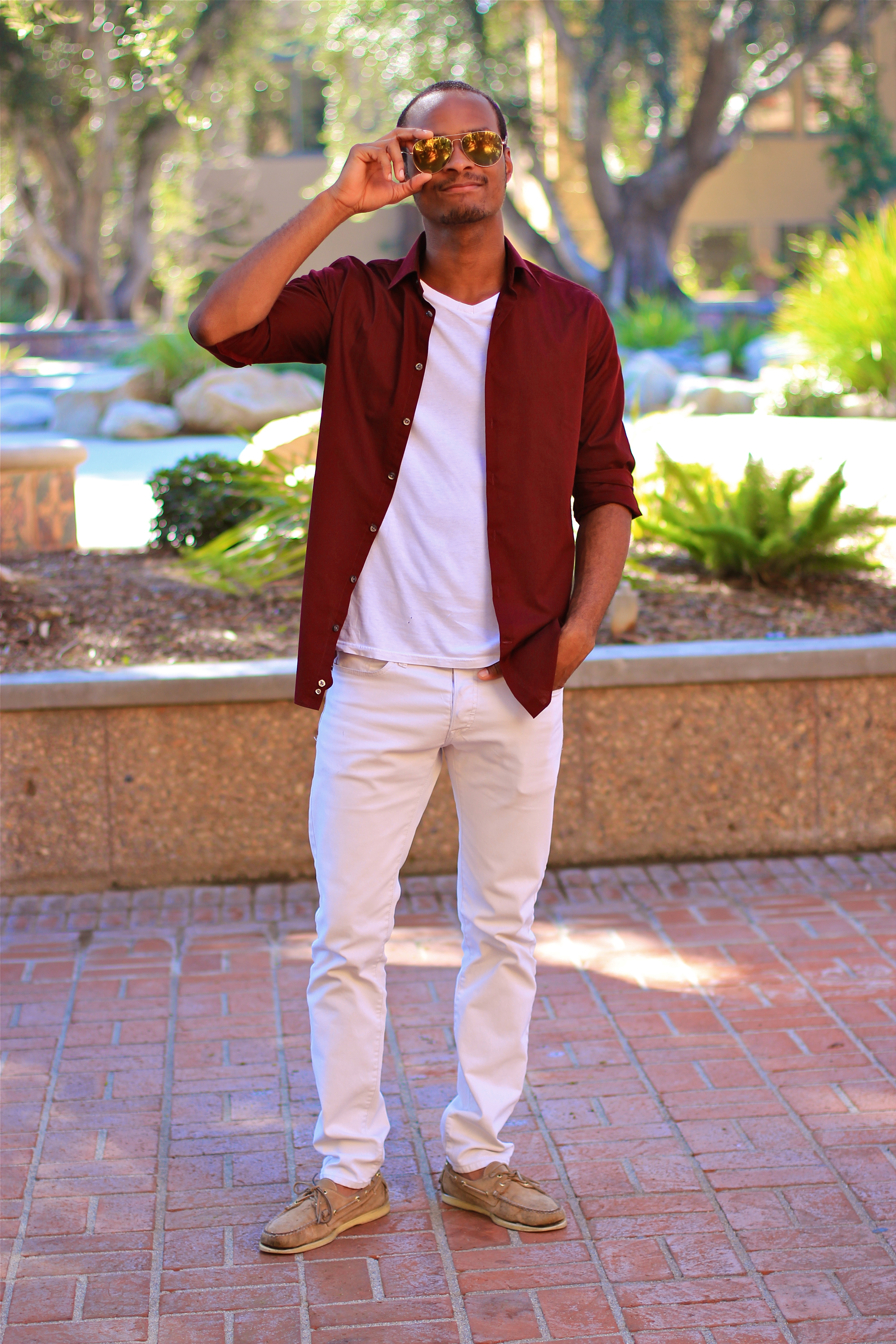 Long-Sleeve Shirt from H&M, Undershirt from Forever 21, Pants from J Crew, Shoes from Sperry’s