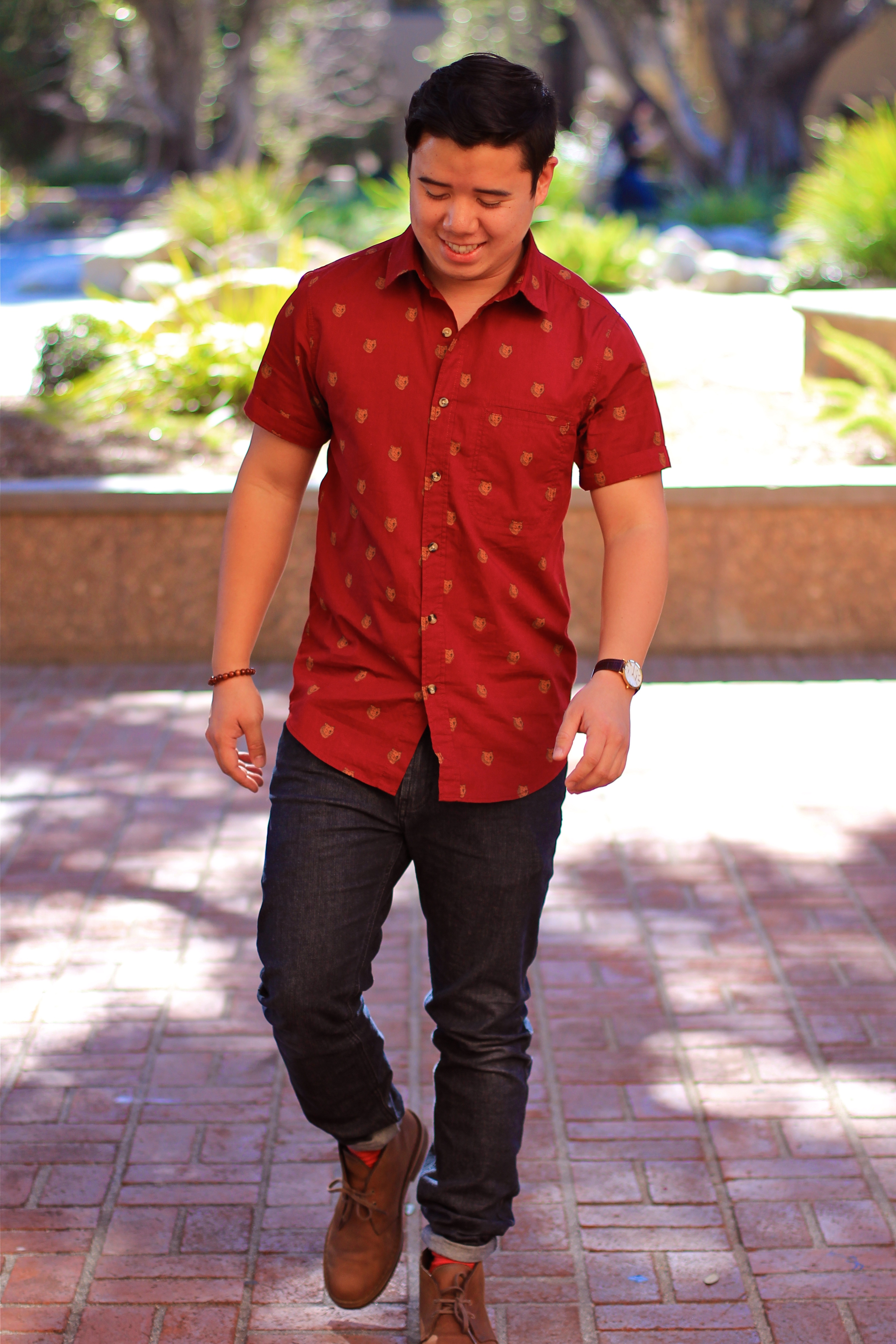 Short-Sleeve Button Up from Topman, Jeans from Pacsun, Shoes from Clarks, Socks from Penguin, Accessories from Misc.