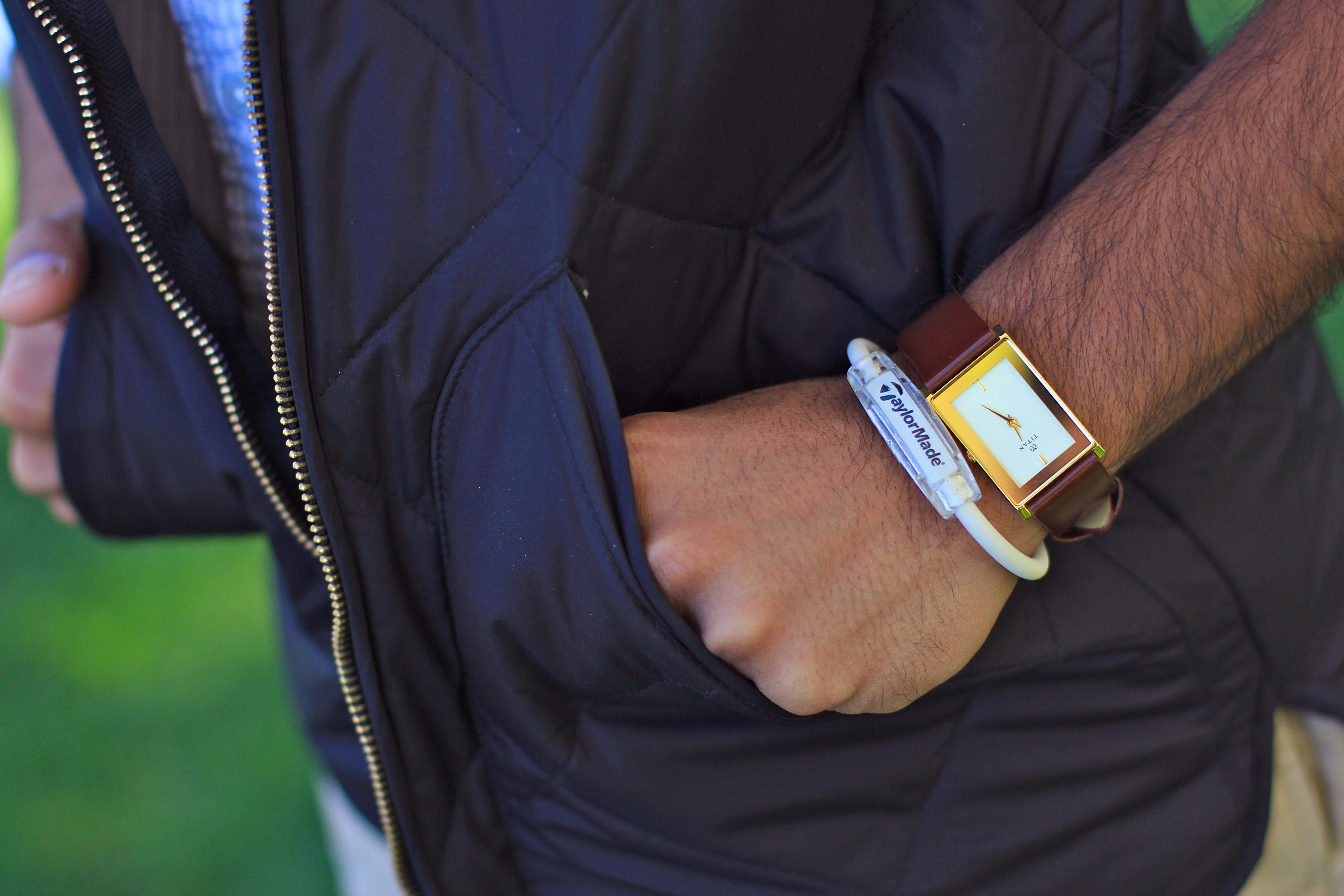 Shirt from J Crew, Pants from J Crew, shoes from Nordstrom, accessories from Taylormade and Watch