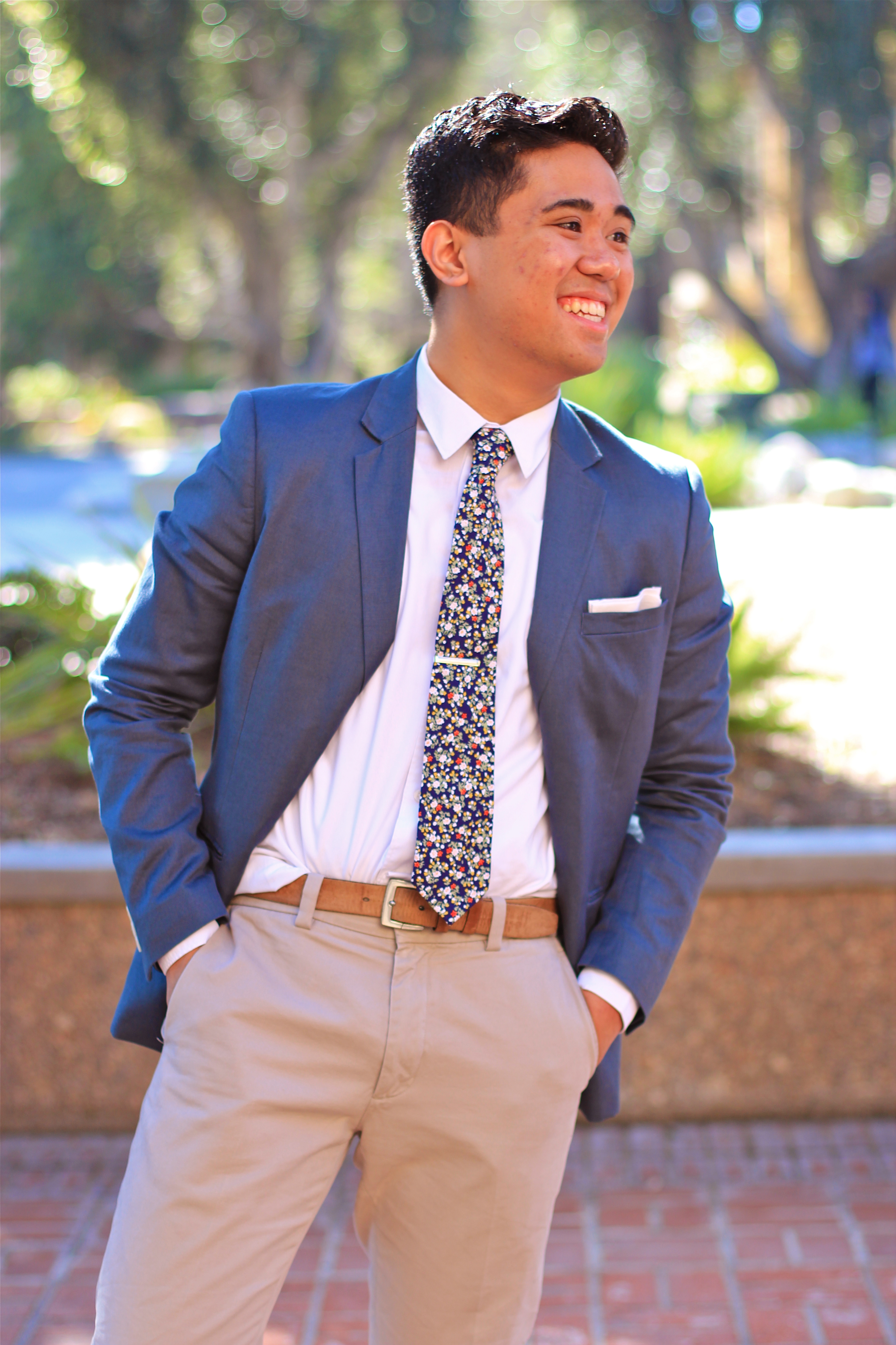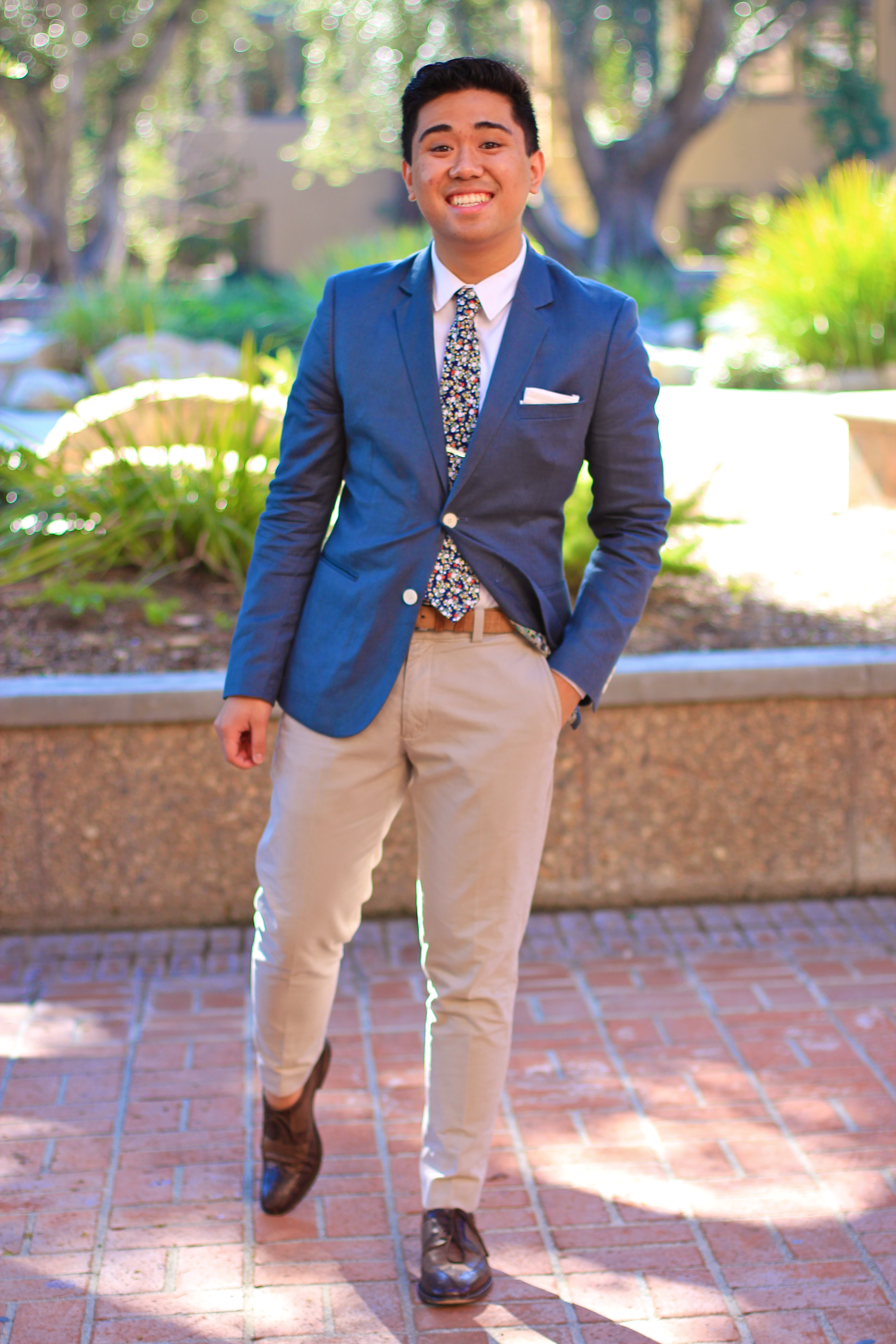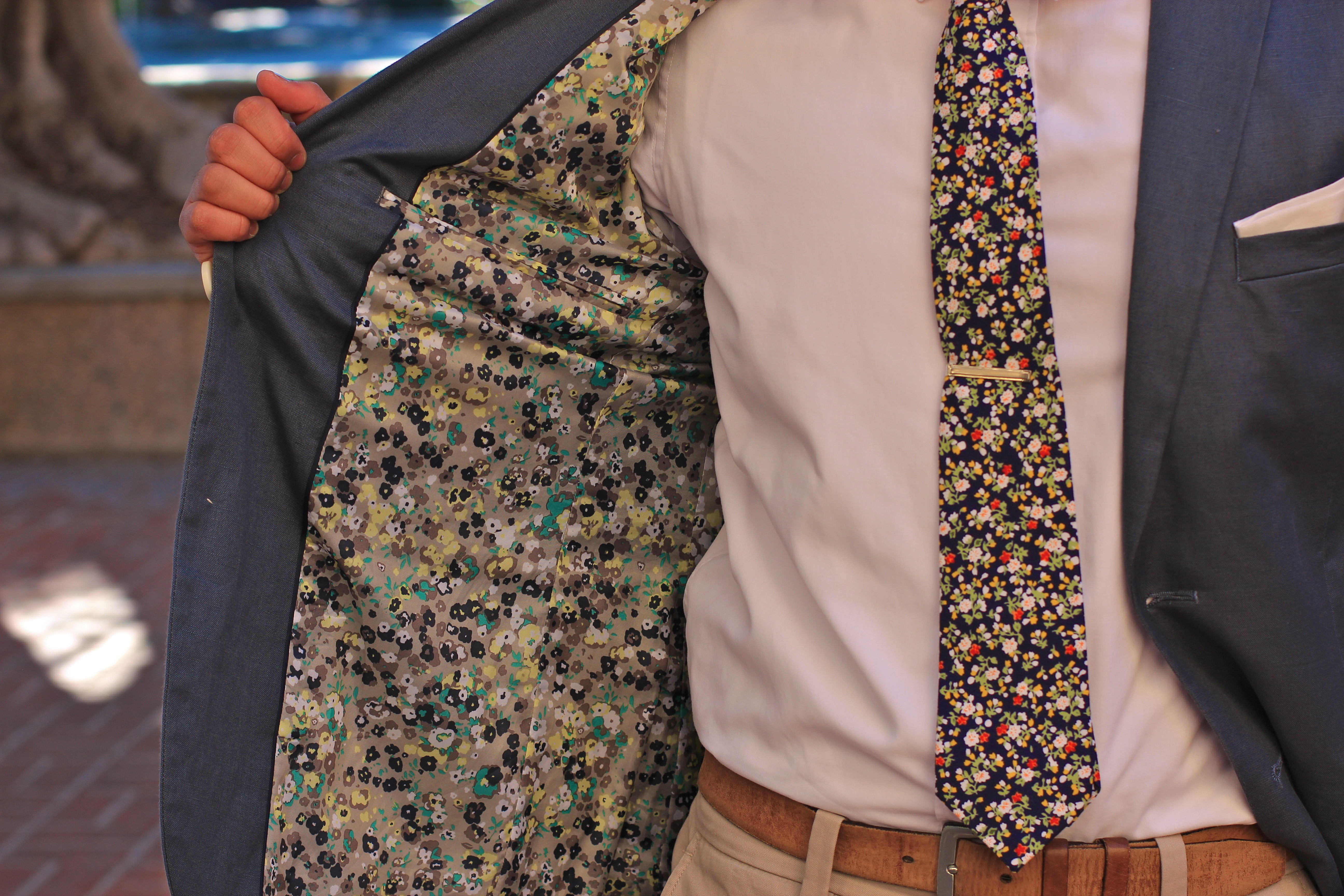 Cotton Jacket from H&M, Shirt from H&M, Floral Tie from Bull+Moose, Khakis from Banana Republic, Vintage Spectators