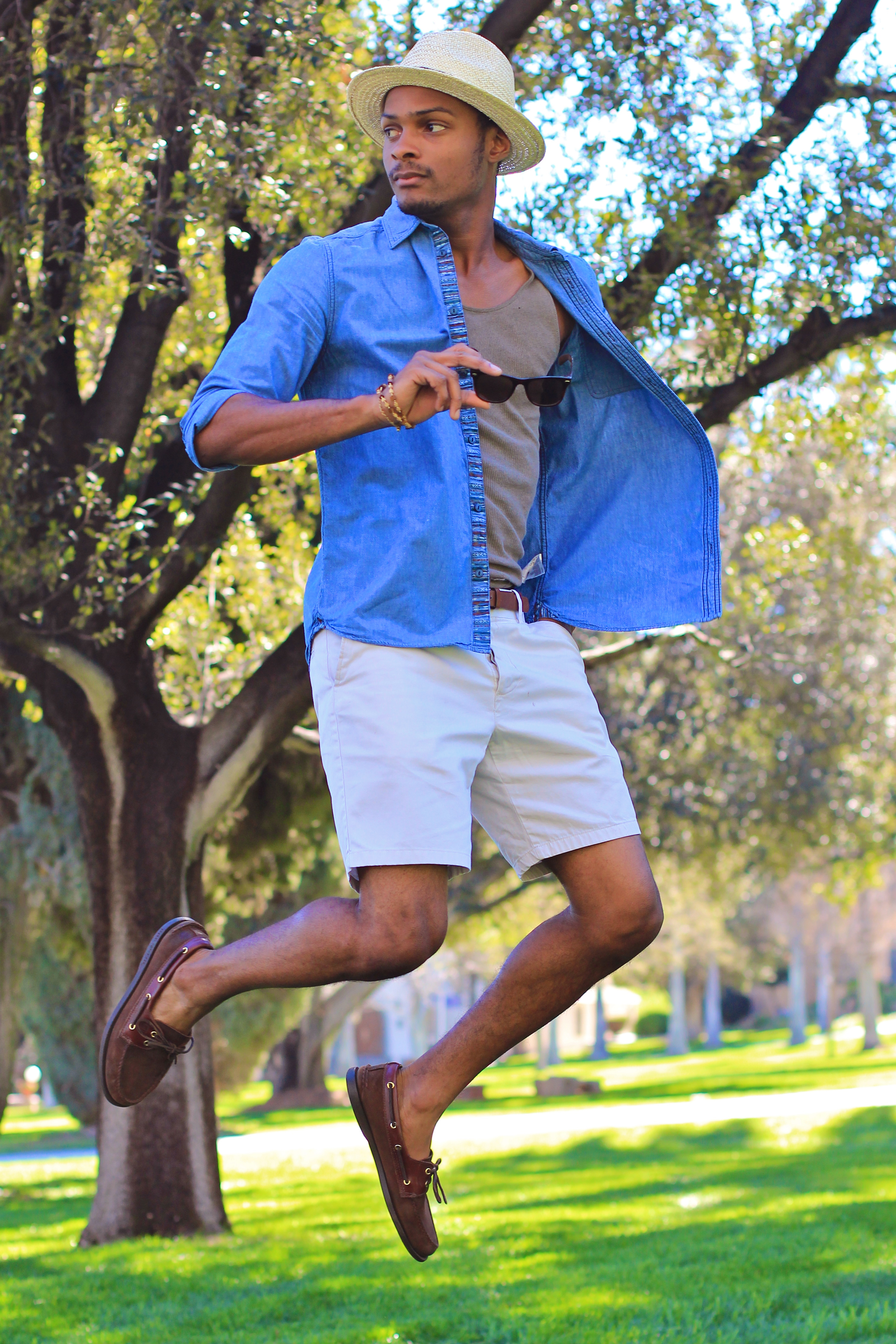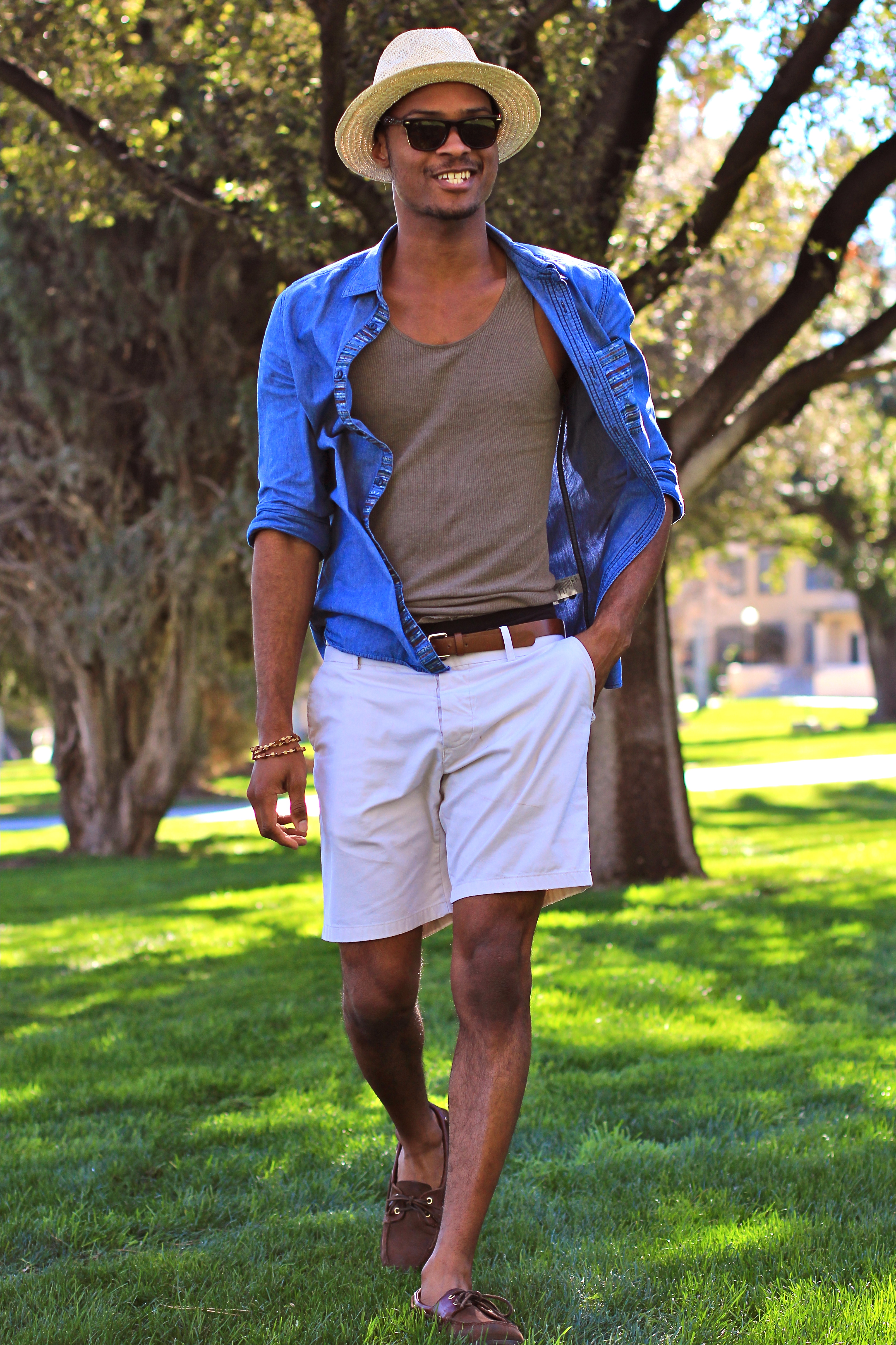 Denim Shirt from H&M, Tank Top from Target, Khaki Shorts from H&M