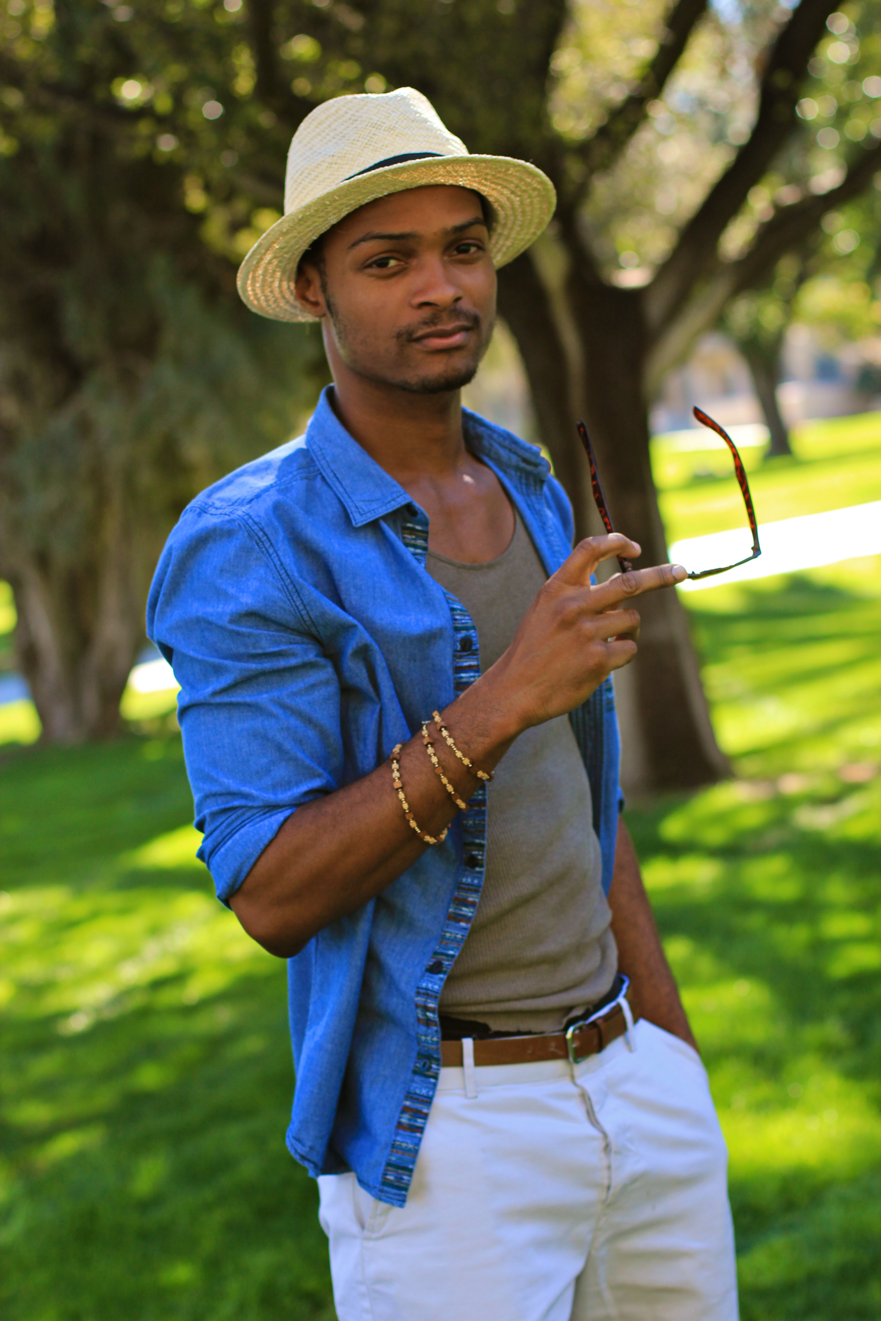 Ian is a game-changer. Amidst a world of ties and blazers and buttoned up shirts, he goes with typical beach fashion. Pulling together typical blues and browns, his color pallet just screams cool and casual. His light khaki shorts are just the right length, ending a bit above the thigh. Ian’s denim shirt adds texture to his outfit, but he keeps it unbuttoned as an extra layer. His unique touch is the Panama Hat, an awesome hat that has lost its touch in modern times.