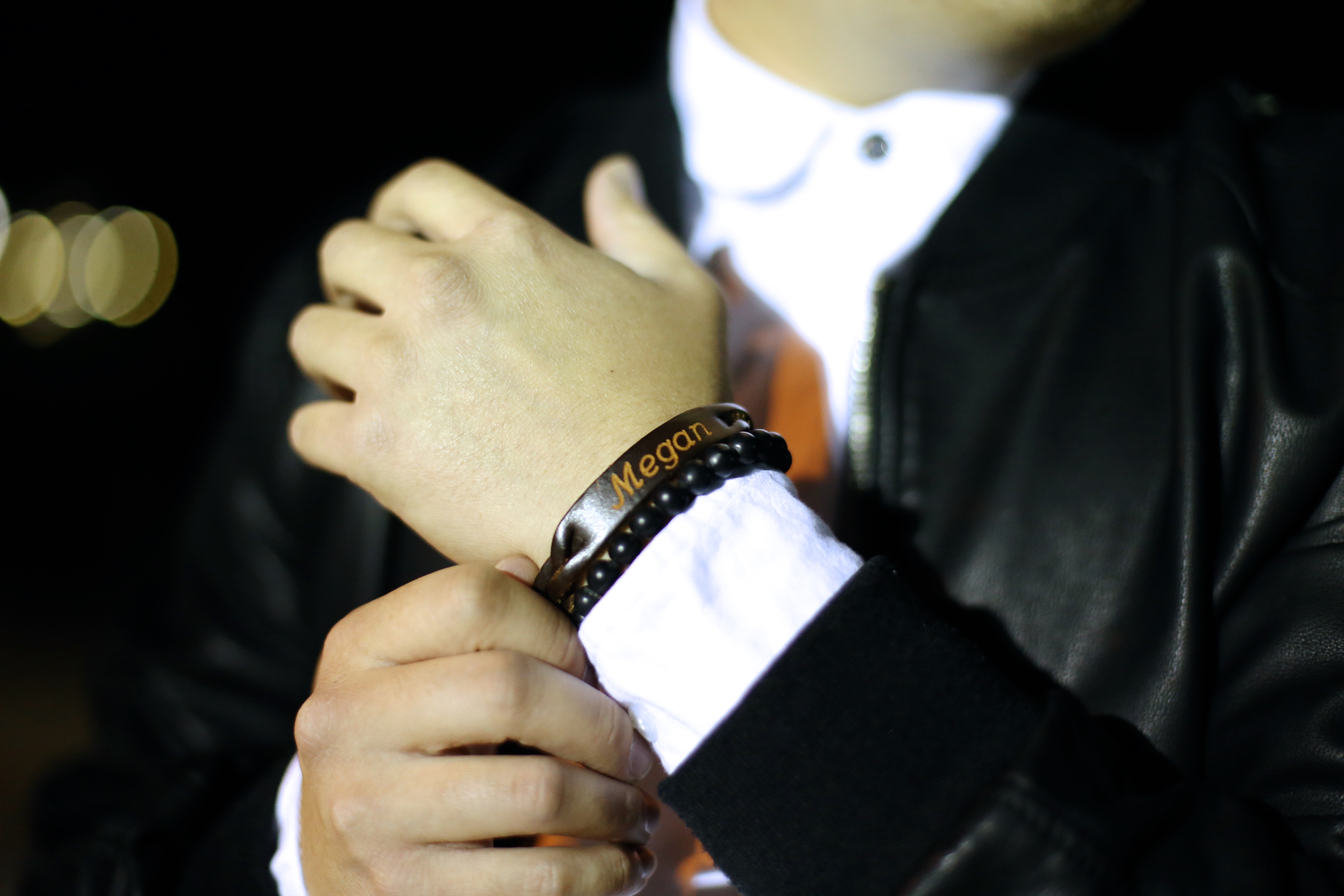 On the subject of being you, Tim wears something that just echoes the current trends in fashion. I don’t know much about streetwear but I do know that black and white is classy as hell. Instead of wearing a suit with his girlfriend, he utilizes a white, cut-away collar button up with the air tie (no tie!) and a leather jacket to make sure everyone knows he’s taken and he’s clean as heck. If people don’t know he’s got a girlfriend, just look at his bracelet. Tim’s shoes are also definitely awesome; just check out that detail!