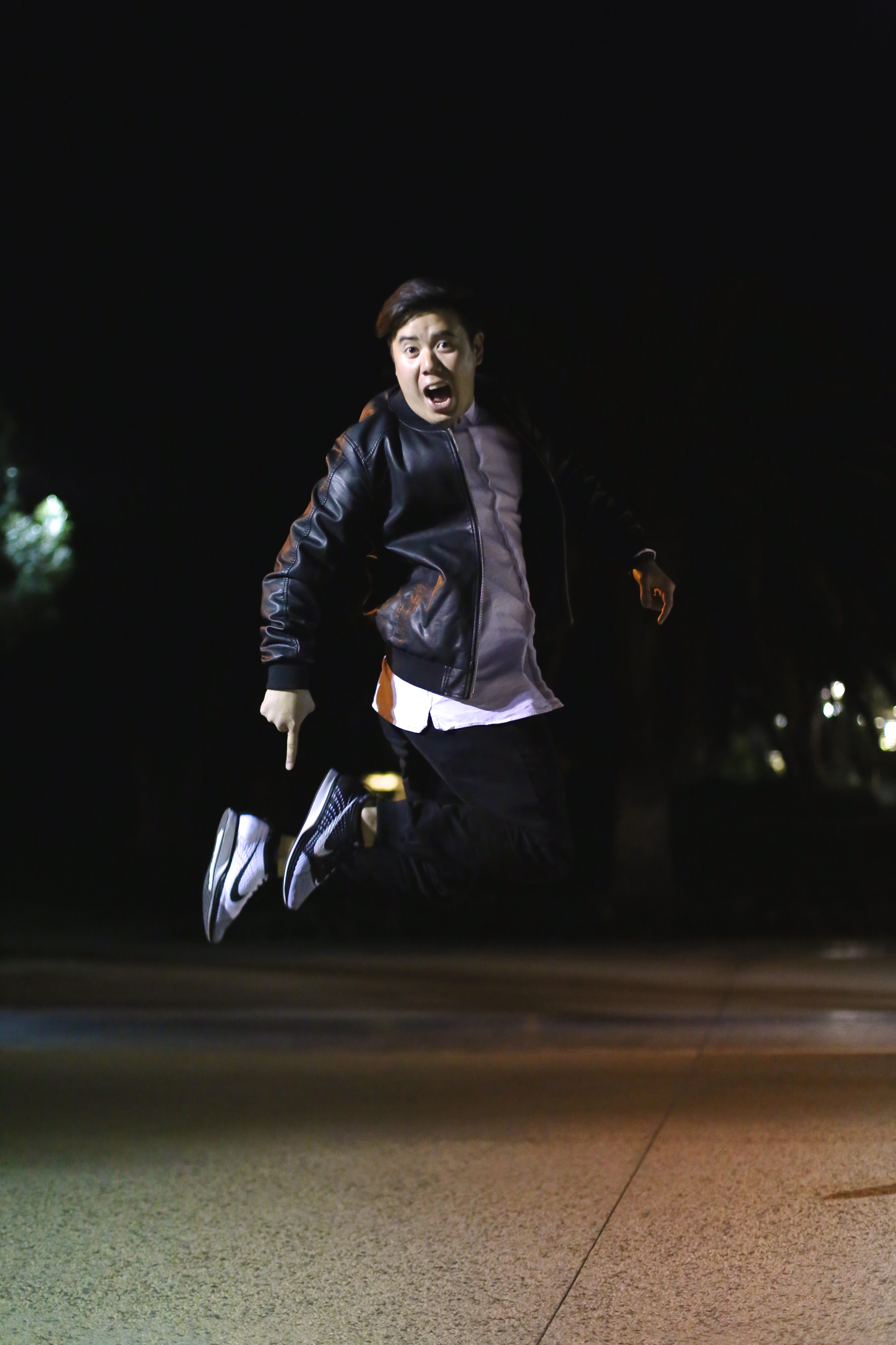Cut-away collar shirt from TopMan, Leather jacket from Forever21, Shoes from NIke, Joggers from Publish Brand