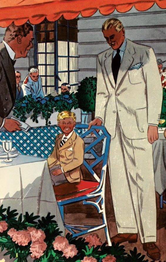 One of your best essays ever. A real pleasure and a lasting source of inspiration. I do notice that some of those drapey thrifted vintage styles work very nicely with your new slouchy look, even with your preference of Ivy/Drakes. I myself find that I prefer 30s styles on other people but something closer to Ivy on myself.