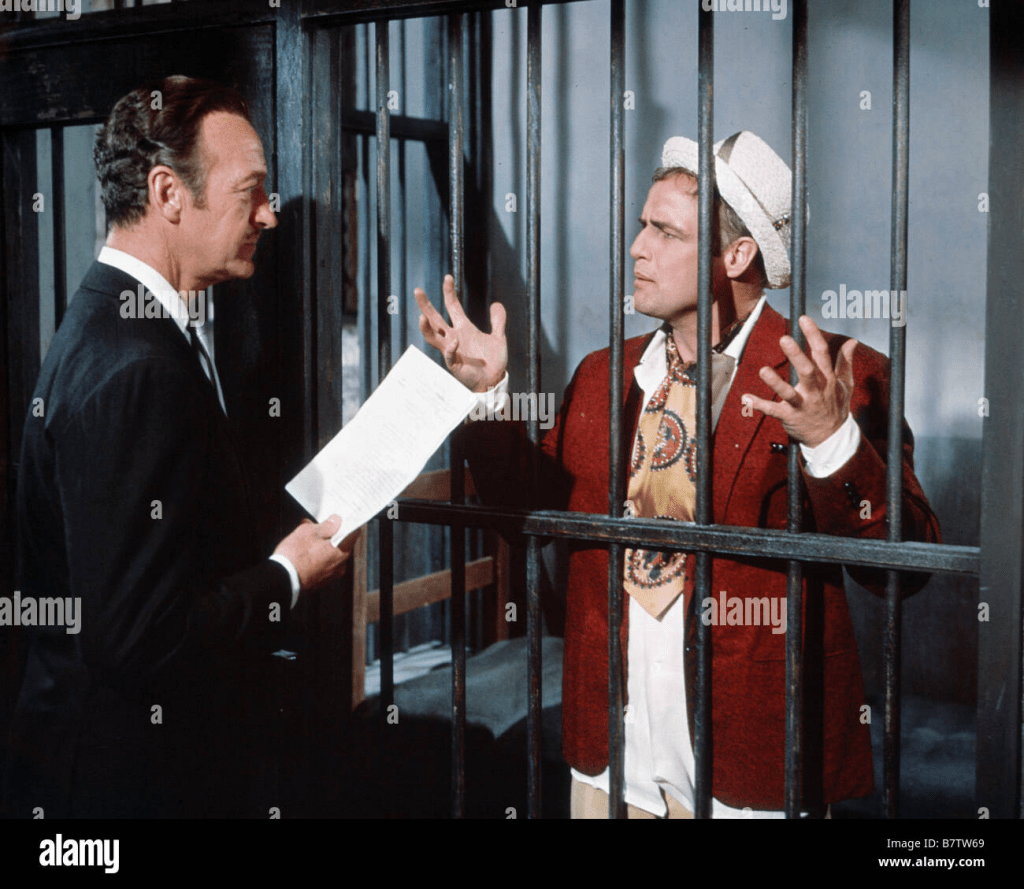 Anyway, I hope you enjoy a few screenshots from the film! I’ve also included a few photos of the original version of this movie: Bedtime Story (1964). I haven’t seen that version, but it looks like it has a few fun fits worn by Marlon Brando (who plays Benson) and David Niven (who plays Jamieson). You’ll see that the 60’s-Benson’s move of wearing a straw hat and blazer was clearly adapted for the DSR version, though 60’s-Jamieson feels rather boring since he wears a normal suit for the period. 80’s-Jamieson at least has a clear POV in his attire.